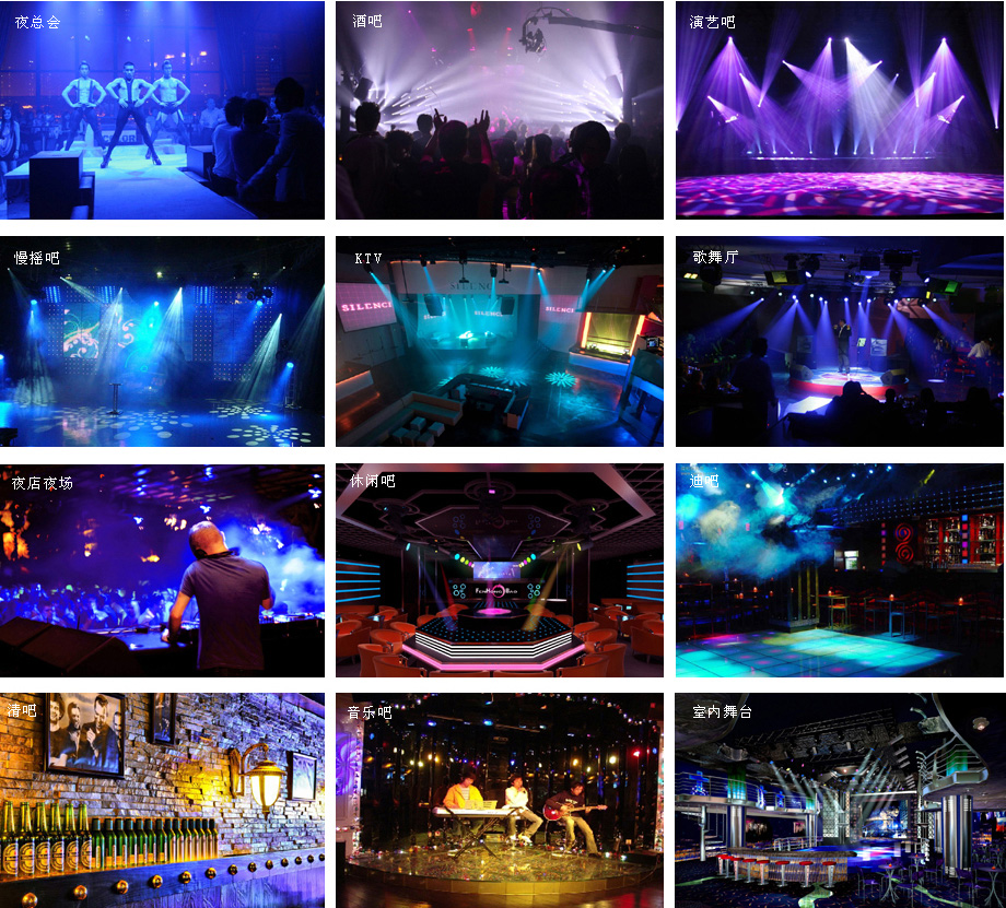 廣泛應用于歌舞廳、DISCO、DJ、PARTY、酒吧、俱樂部、夜總會、家庭聚會、KTV及包房、迪吧、中小型娛樂場所。