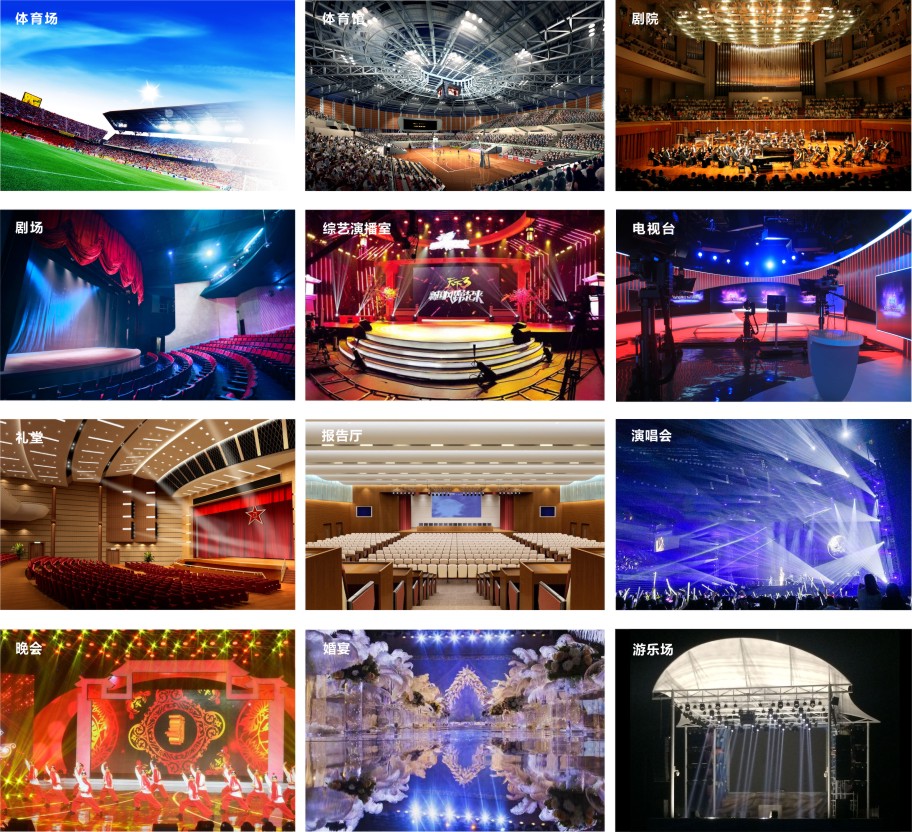 廣泛應用: 劇場、劇院、電視臺、綜藝演播室、禮堂、報告廳、體育場館等大中型演藝場所;