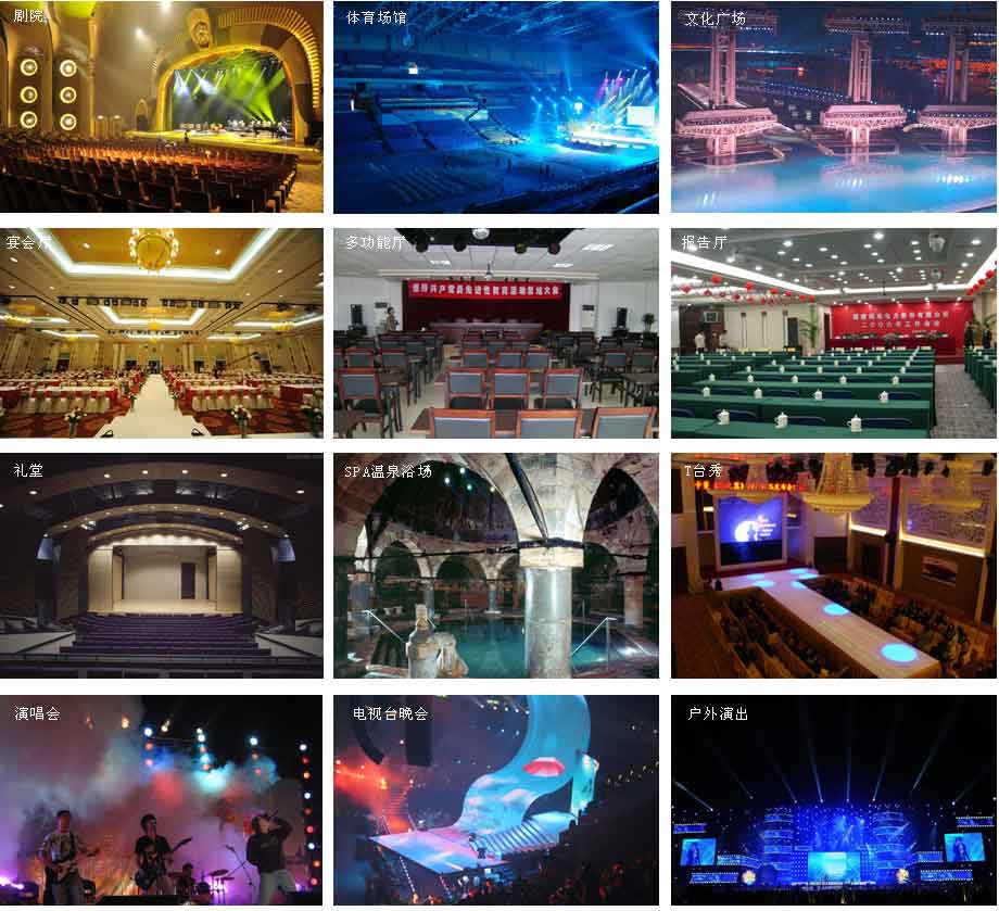 廣泛應(yīng)用: 體育場館、劇場、劇院、電視臺、綜藝演播室、禮堂、報告廳等大中型演藝場所。